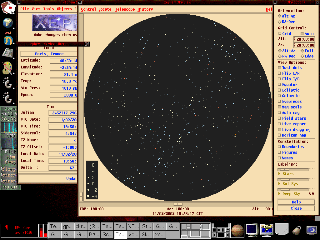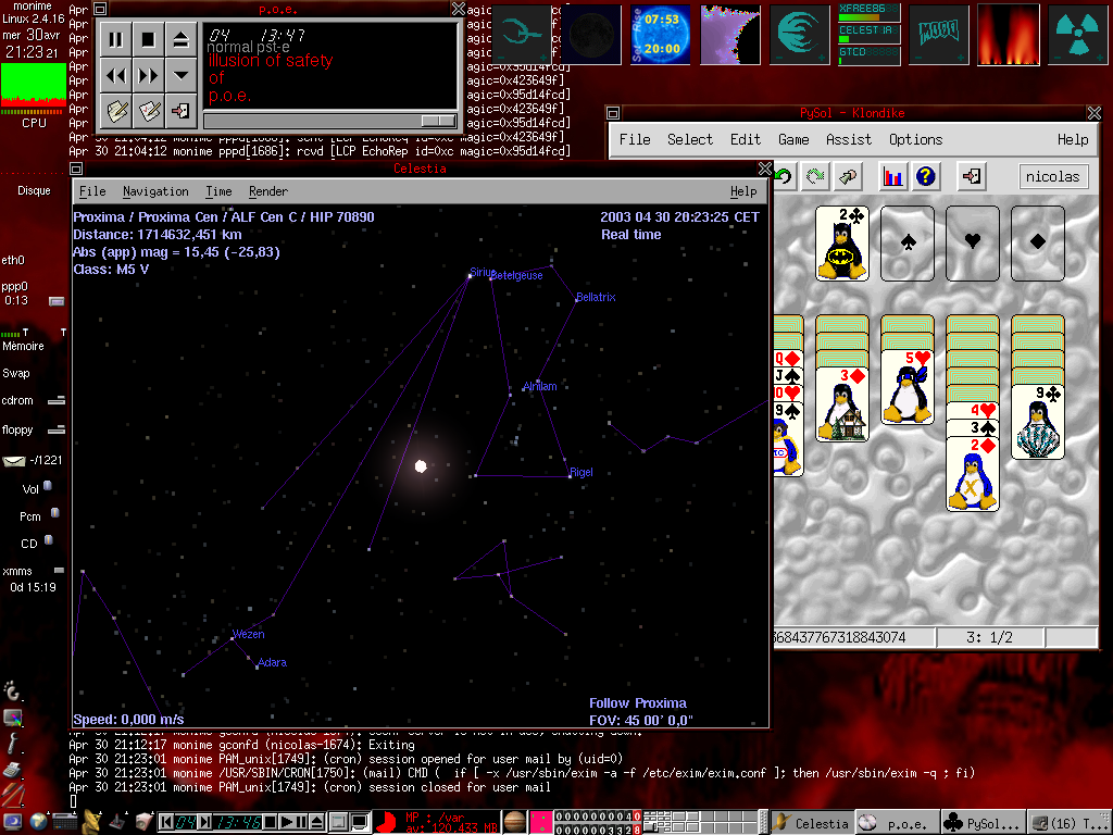 - Le fantastique Celestia (qui existe aussi sous windows), pysol et des applet WindowMaker,
