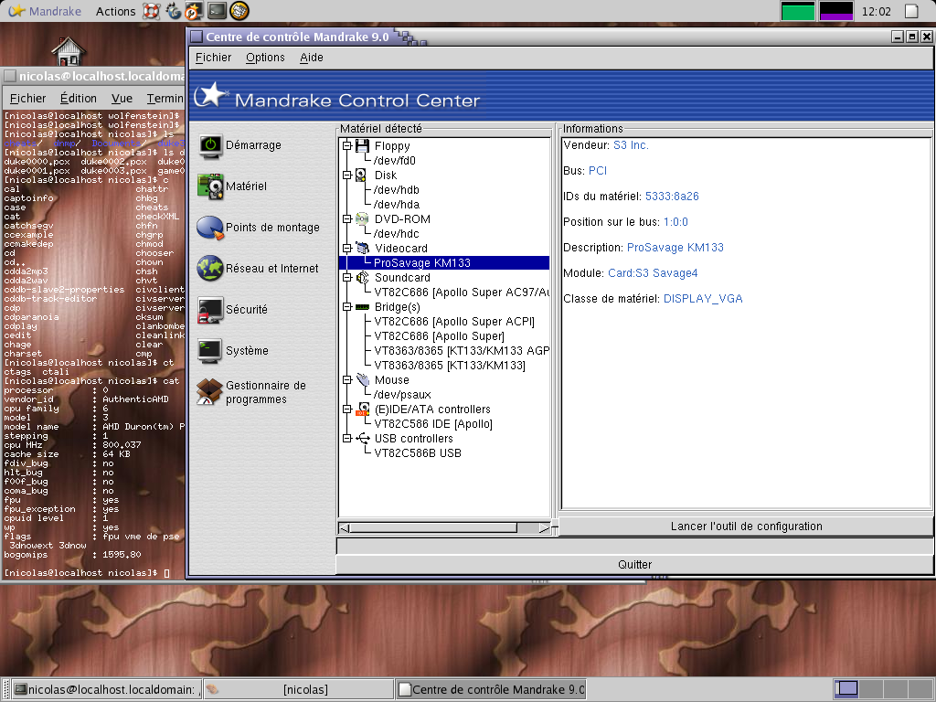 - Une Mandrake 9.0 temporaire, qui m'a mis sur le cul en reconnaissant tout sauf le modem et le midi,