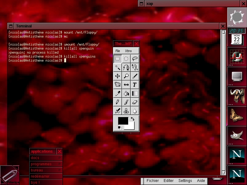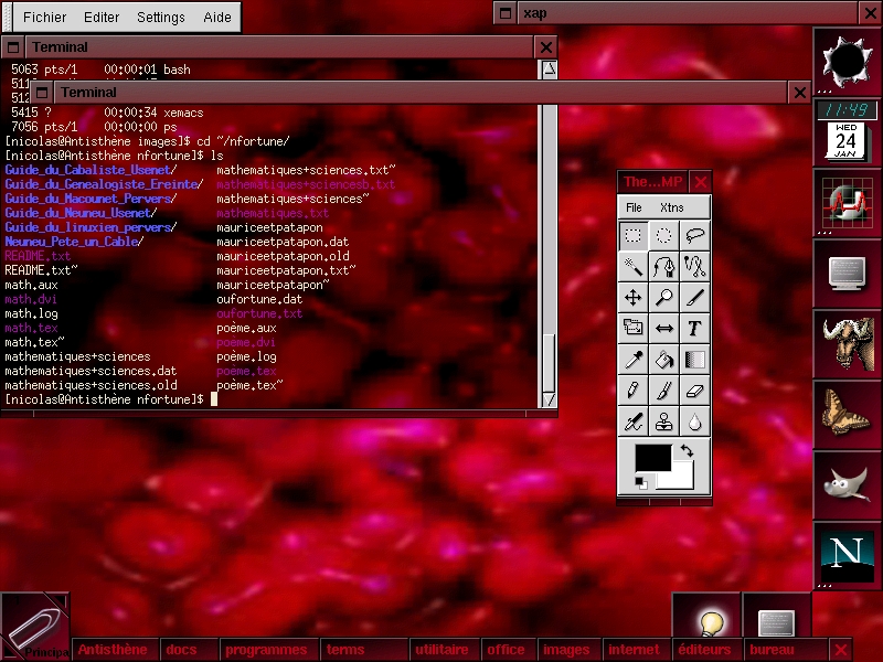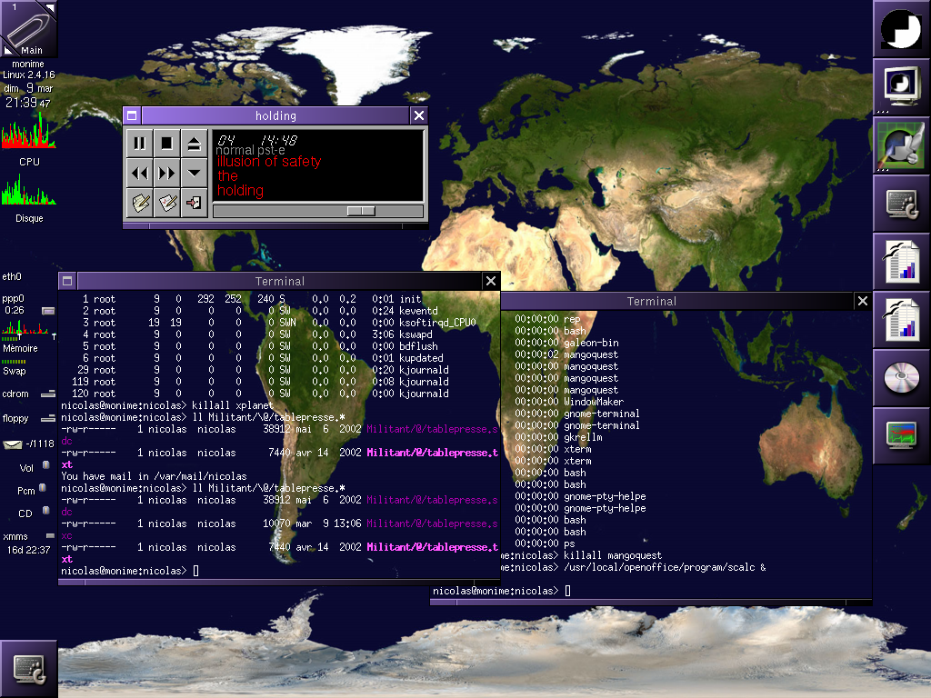 - Windowmaker avec les mêmes applications (sauf xap) et configuration,
